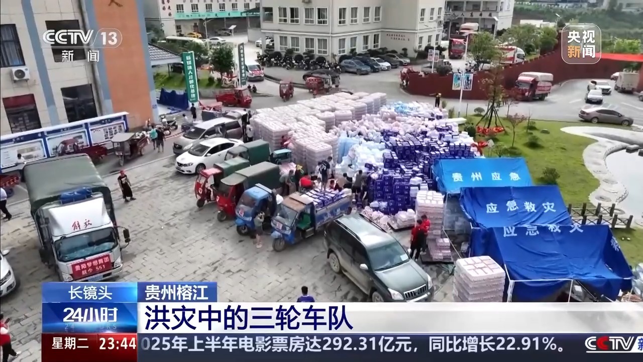 贵州榕江已终止防汛Ⅰ级应急响应,转入到清淤、除障、消杀等工作中。各界爱心物资也纷纷汇聚榕江。如何打通配送“最后一公里”,把生活物资送到群众手里,三轮车成为最主要的运输工具。眼下,刚遭受洪水侵袭的榕江,组建起多个三轮车队,穿梭大街小巷,运生活物资,送爱心盒饭。三轮车上的点滴努力,温暖着这座小城。