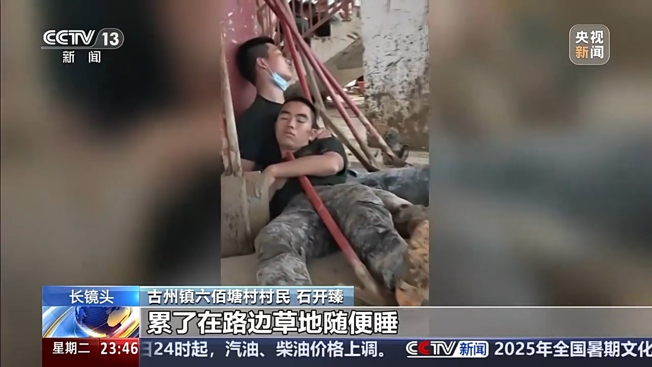 榕江县古州镇六佰塘村村民 石开臻:看那些武警同志,累了,在路边草地随便睡,刷到那些视频我都不敢看。咬牙这几天一起渡过难关,榕江一定行,团结一心,团结就是力量。