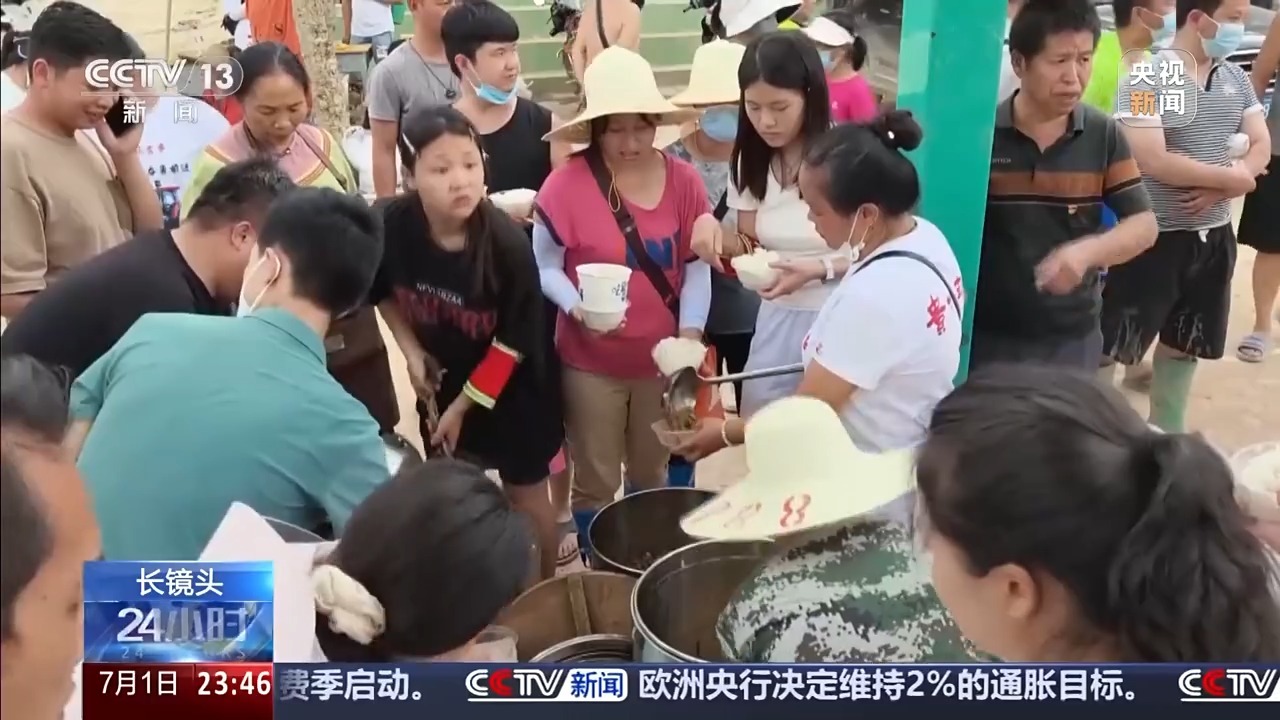 榕江县古州镇场坝社区居民 杨声琼:现在家里面有4个人,所以这个水够我们家吃了,泡面可以应急。人心真的很齐,看到了所有人对我们的关爱,还有各个地方对我们的支援,我相信我们榕江一定会越来越好的。